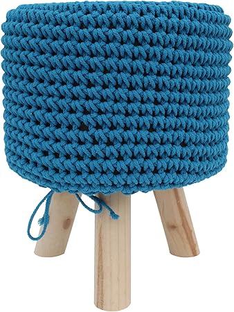 Rebecca Mobili Sitzhocker Hellblau Fussbank Aus Stoff Und Holz